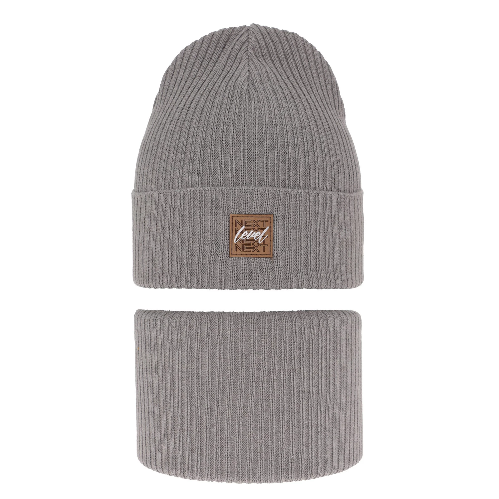 Czapka i komin dla chłopca jesienny, wiosenny komplet, z bawełną, jasnoszary Fenix