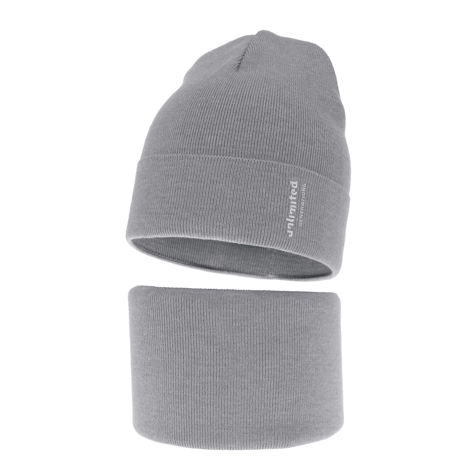 Czapka i komin dla chłopca jesienny, wiosenny komplet, z bawełną, szary Timothe