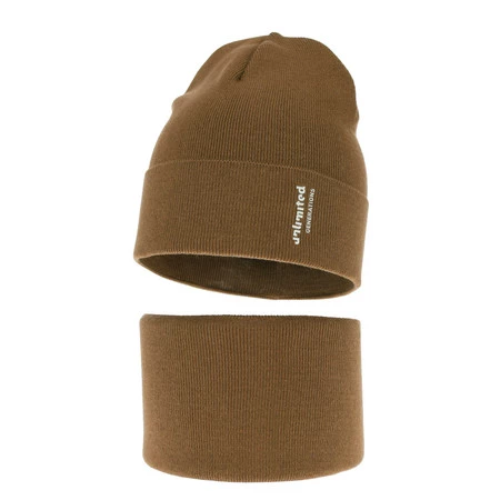 Czapka i komin dla chłopca jesienny, wiosenny komplet, z bawełną, camel Timothe