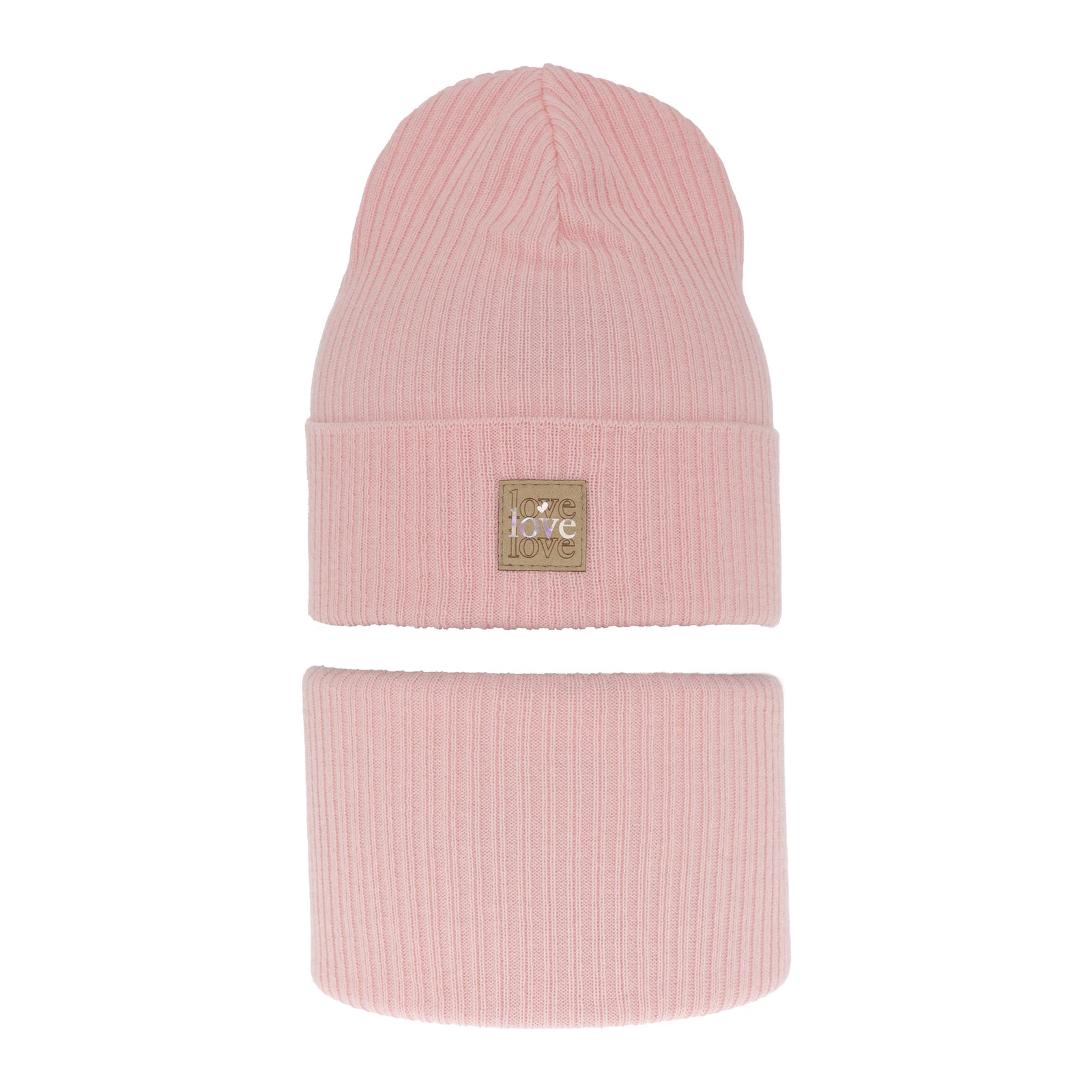 Czapka i komin dla dziewczynki jesienny, wiosenny komplet, z bawełną, różowy Furora