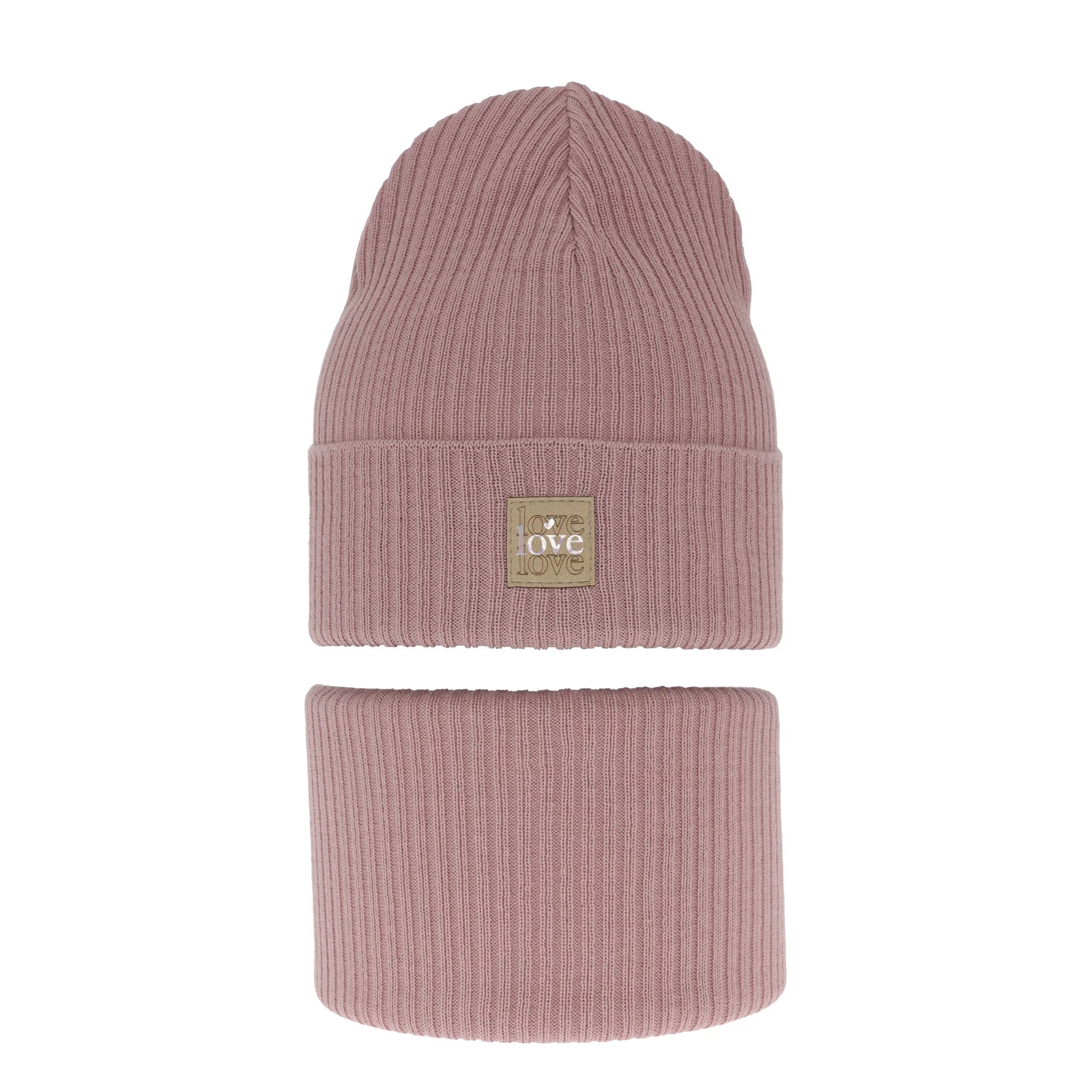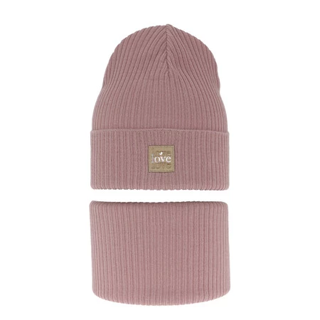 Czapka i komin dla dziewczynki jesienny, wiosenny komplet, z bawełną, wrzosowy Furora
