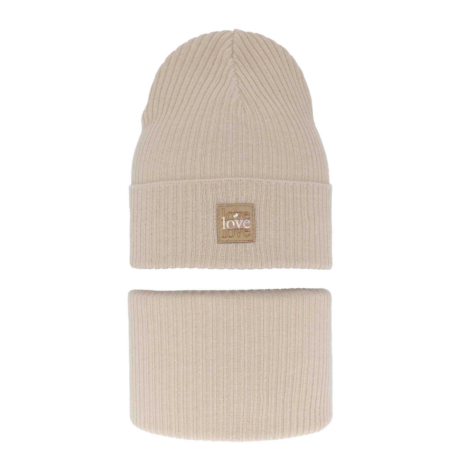 Czapka i komin dla dziewczynki jesienny, wiosenny komplet, z bawełną, beżowy Furora