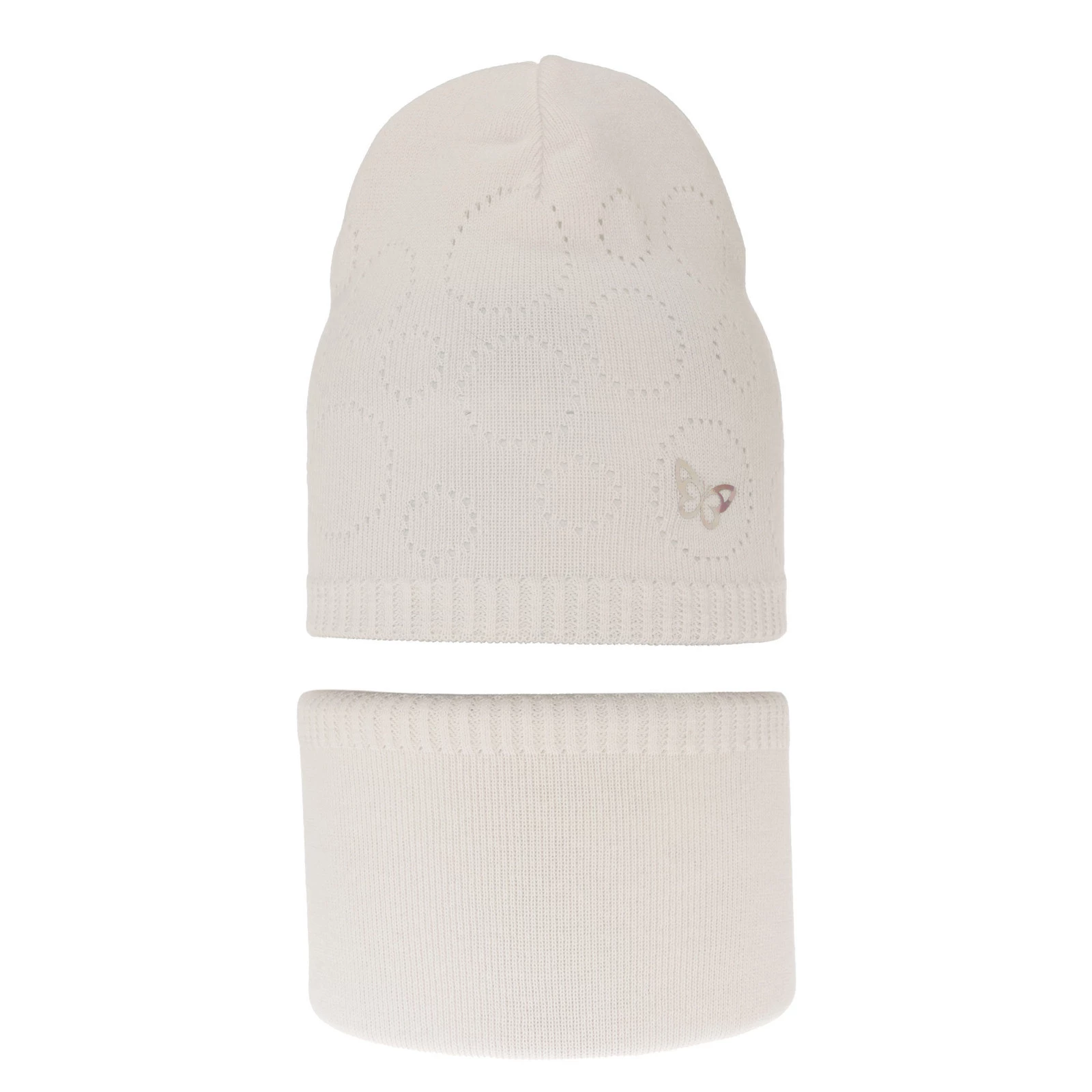 Czapka i komin dla dziewczynki jesienny, wiosenny komplet, kremowy, z bawełną, ażurowy Amarilla