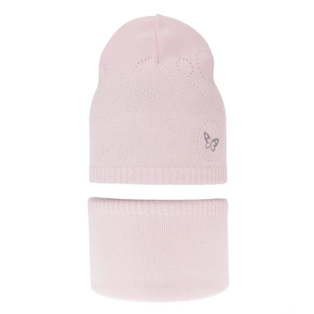 Czapka i komin dla dziewczynki jesienny, wiosenny komplet, z bawełną, jasnoróżowy, Amarilla