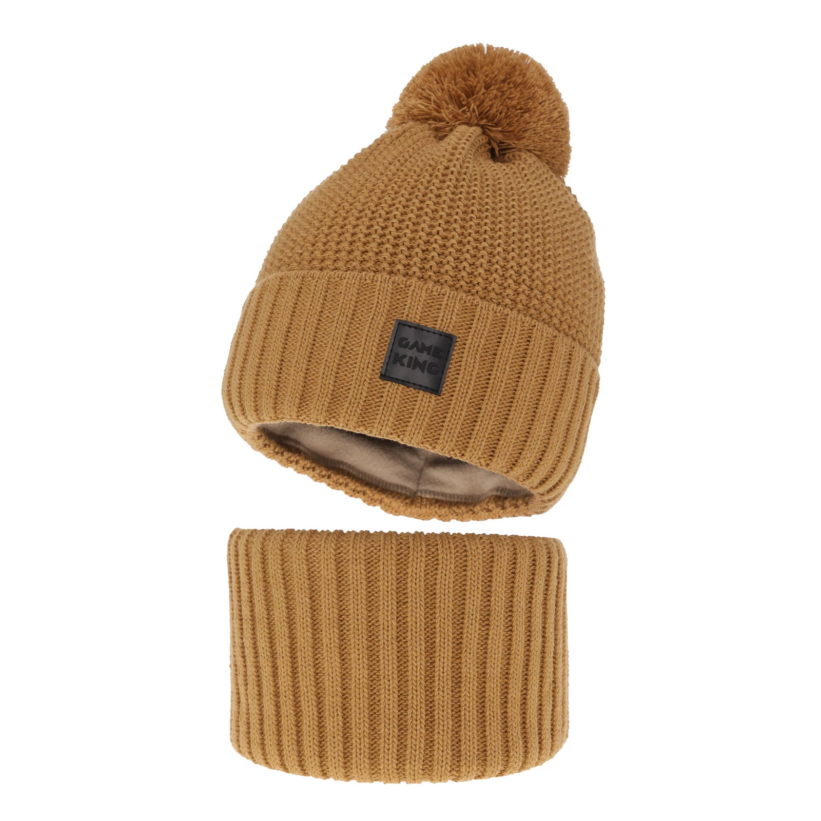 Czapka i komin dla chłopca zimowy komplet, camel, z pomponem Conan