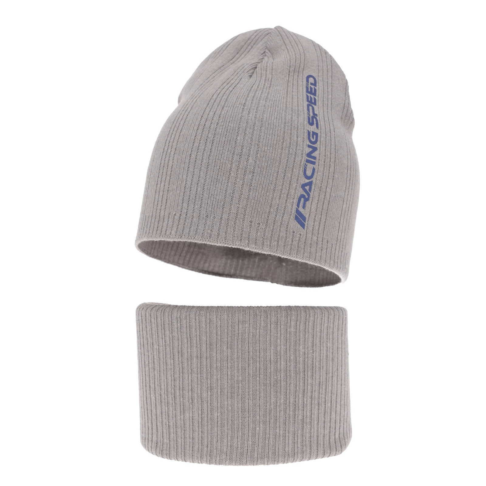 Czapka i komin dla chłopca jesienny, wiosenny komplet, szary, bawełniany Kolorado