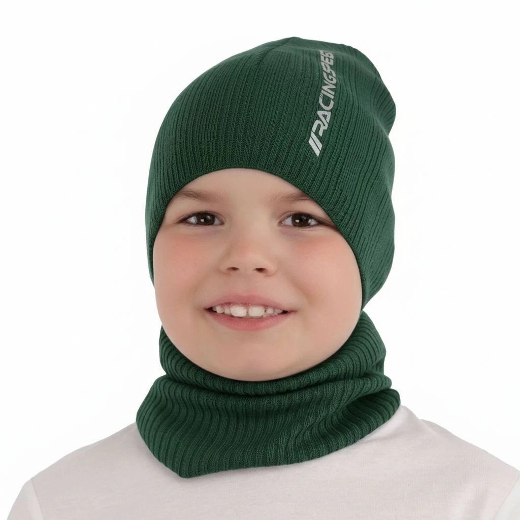 Czapka i komin dla chłopca jesienny, wiosenny komplet, szmaragdowy, bawełniany Kolorado