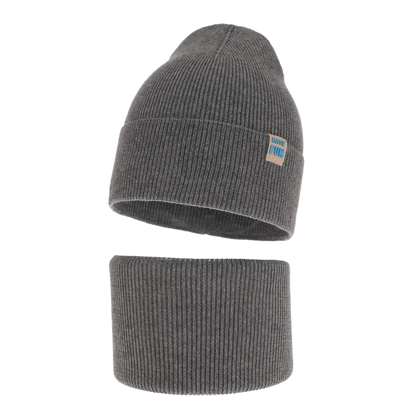 Czapka i komin dla chłopca jesienny, wiosenny komplet, z bawełną, szary Ottavio