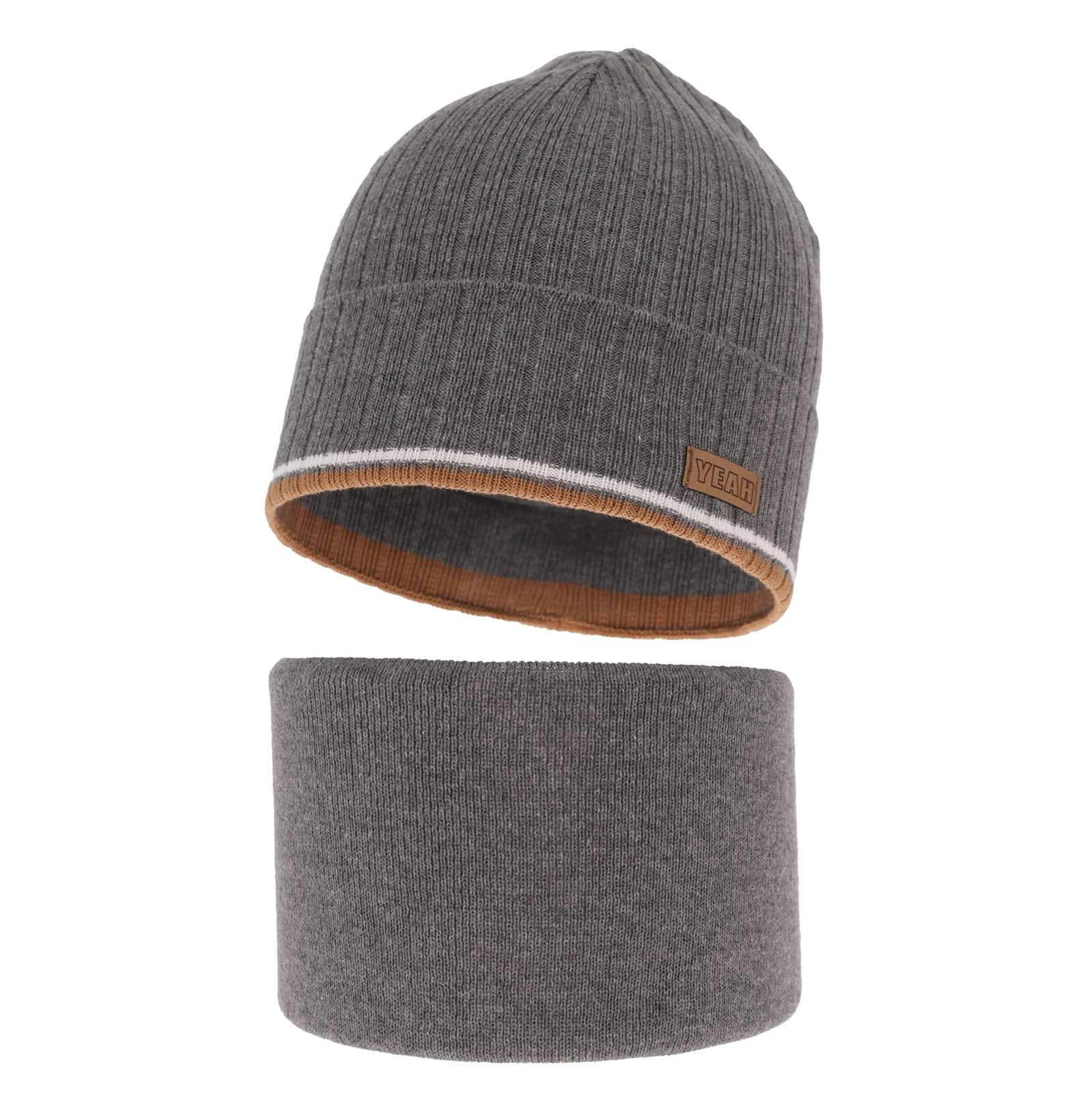 Czapka i komin dla chłopca jesienny, wiosenny komplet, z bawełną, szary London