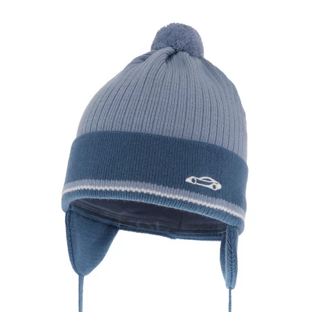 Czapka jesienna, wiosenna dla chłopca, jasnoniebieska, wiązana, z pomponem Jacob