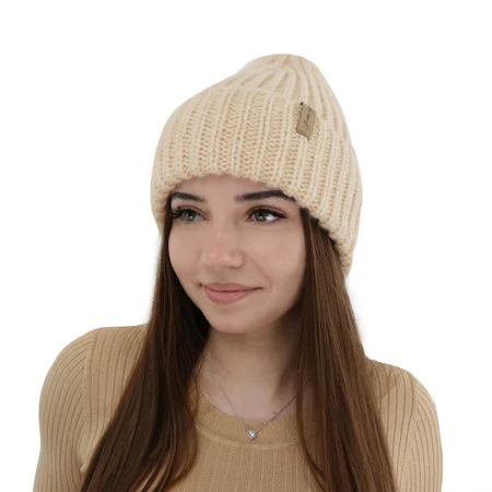 Czapka zimowa damska, kremowa, z wełną merino Caro