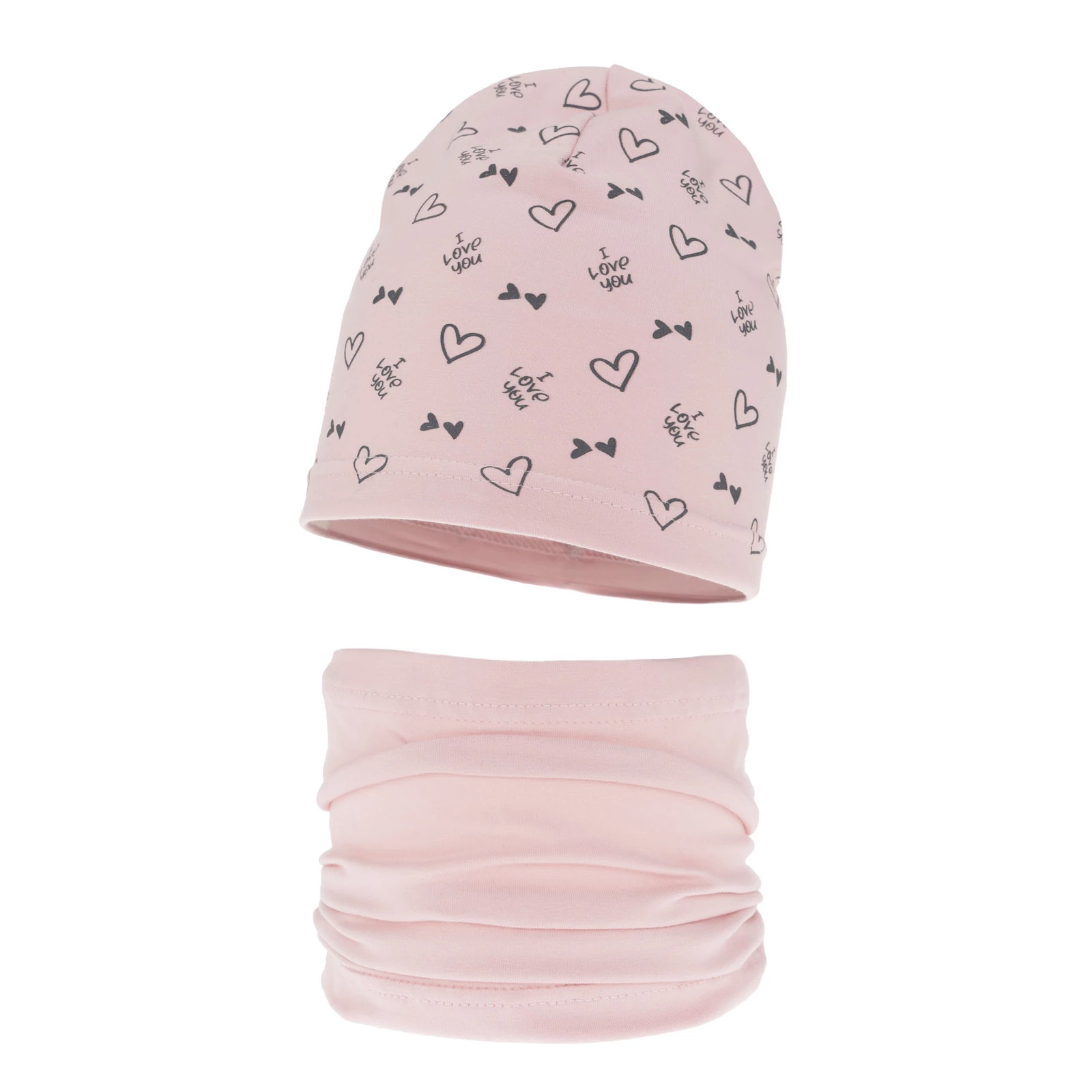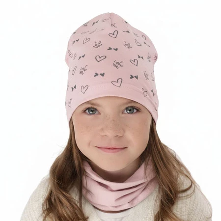 Czapka i komin dla dziewczynki jesienny, wiosenny komplet, różowy, bawełniany Lovena