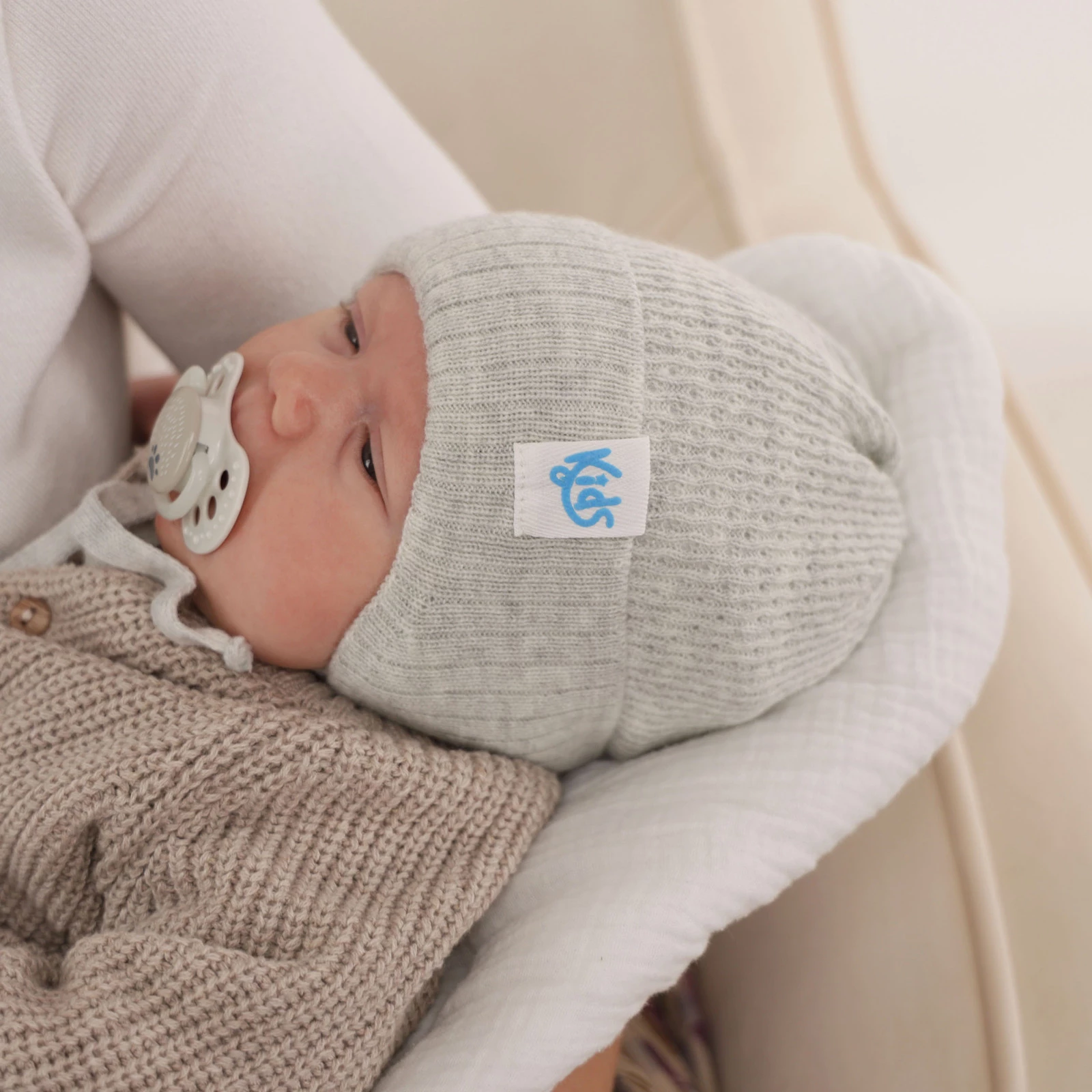 Czapka jesienna, wiosenna dla chłopca, jasnoszara, wiązana Galvani