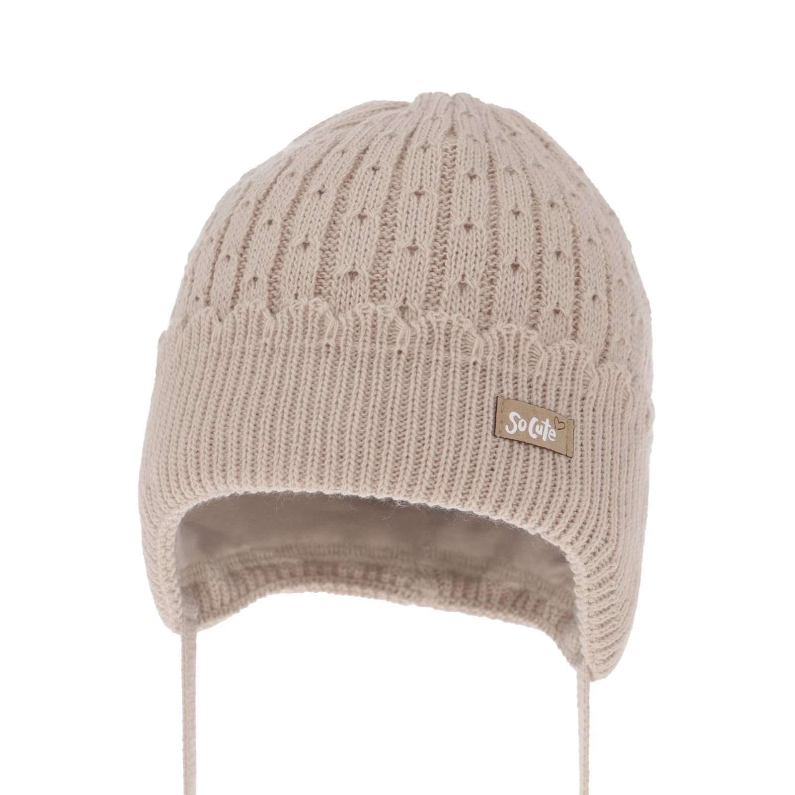 Czapka jesienna, wiosenna dla dziewczynki, beżowa, wiązana Tema