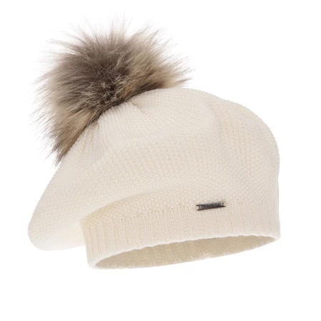 Beret damski zimowy, kremowy, z wełną merino Bonnie