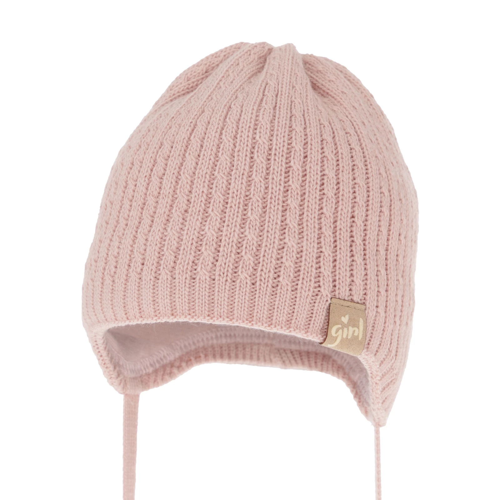 Czapka jesienna, wiosenna dla dziewczynki, różowa, wiązana Cheri