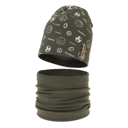 Czapka i komin dla chłopca jesienny, wiosenny komplet, khaki, bawełniany Paolo