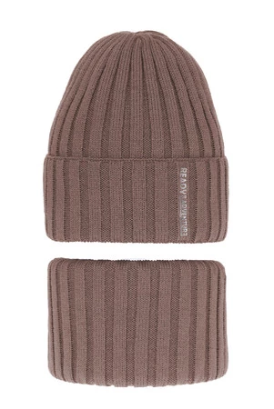 Czapka i komin dla chłopca zimowy komplet, brązowy Livido