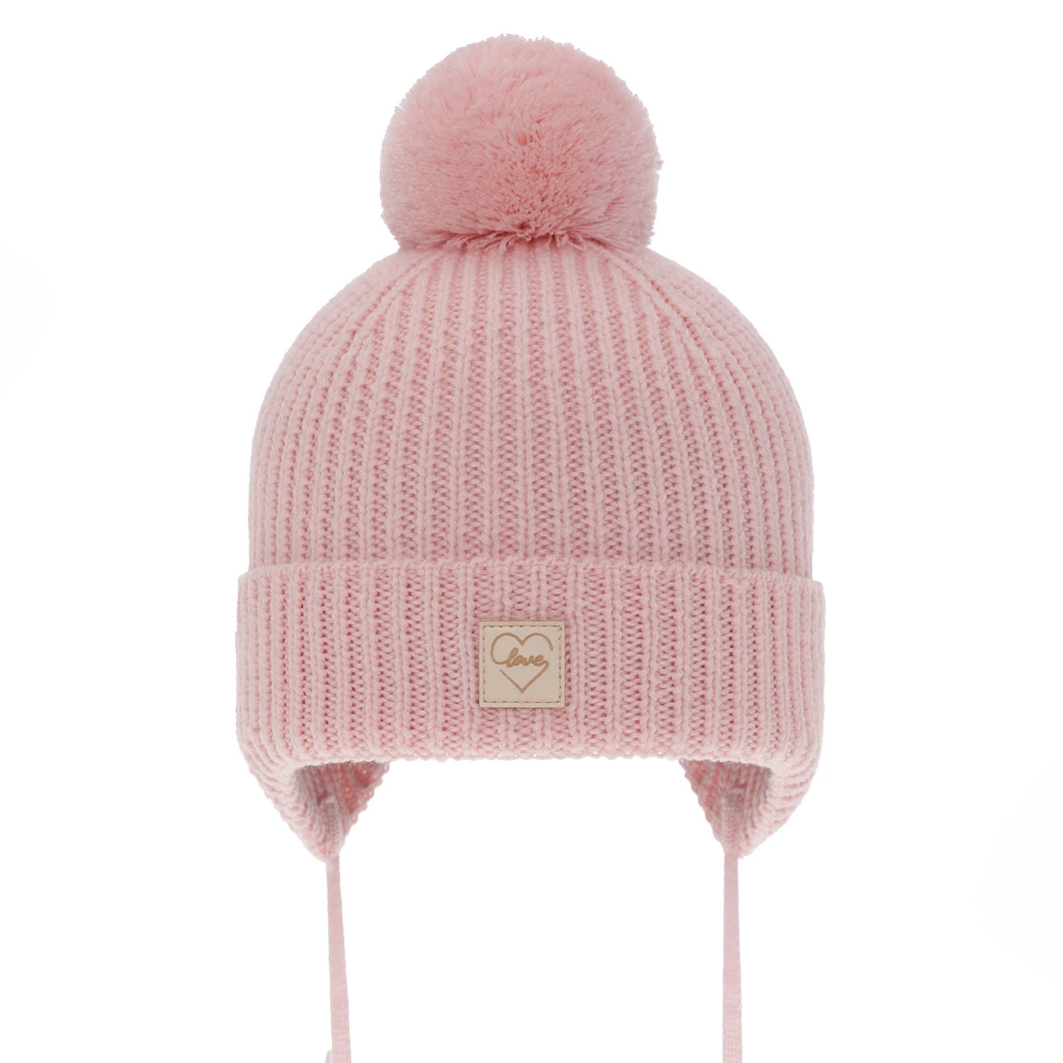 Czapka zimowa dla dziewczynki, różowa, 100% wełniana merino, podszyta wełnianym polarem, z pomponem Hakkari
