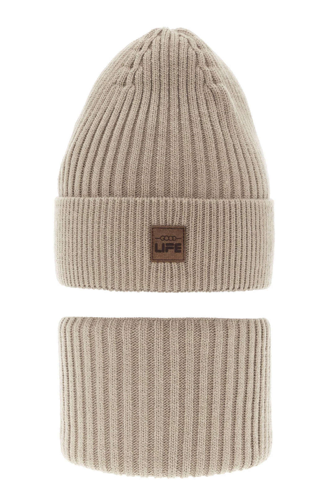Czapka i komin dla chłopca zimowy komplet, beżowy Basilio