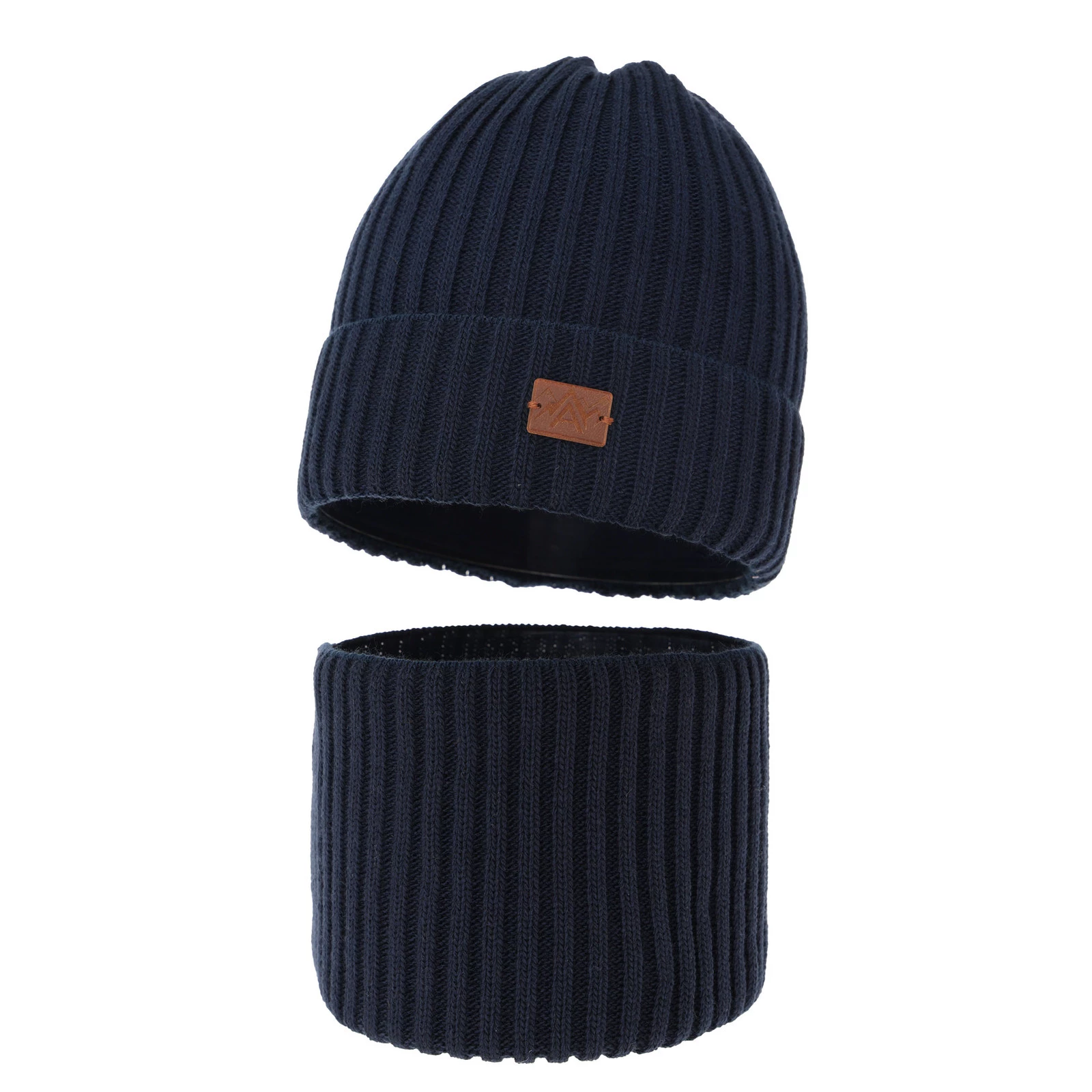 Czapka i komin dla chłopca zimowy komplet, granatowy Fargo