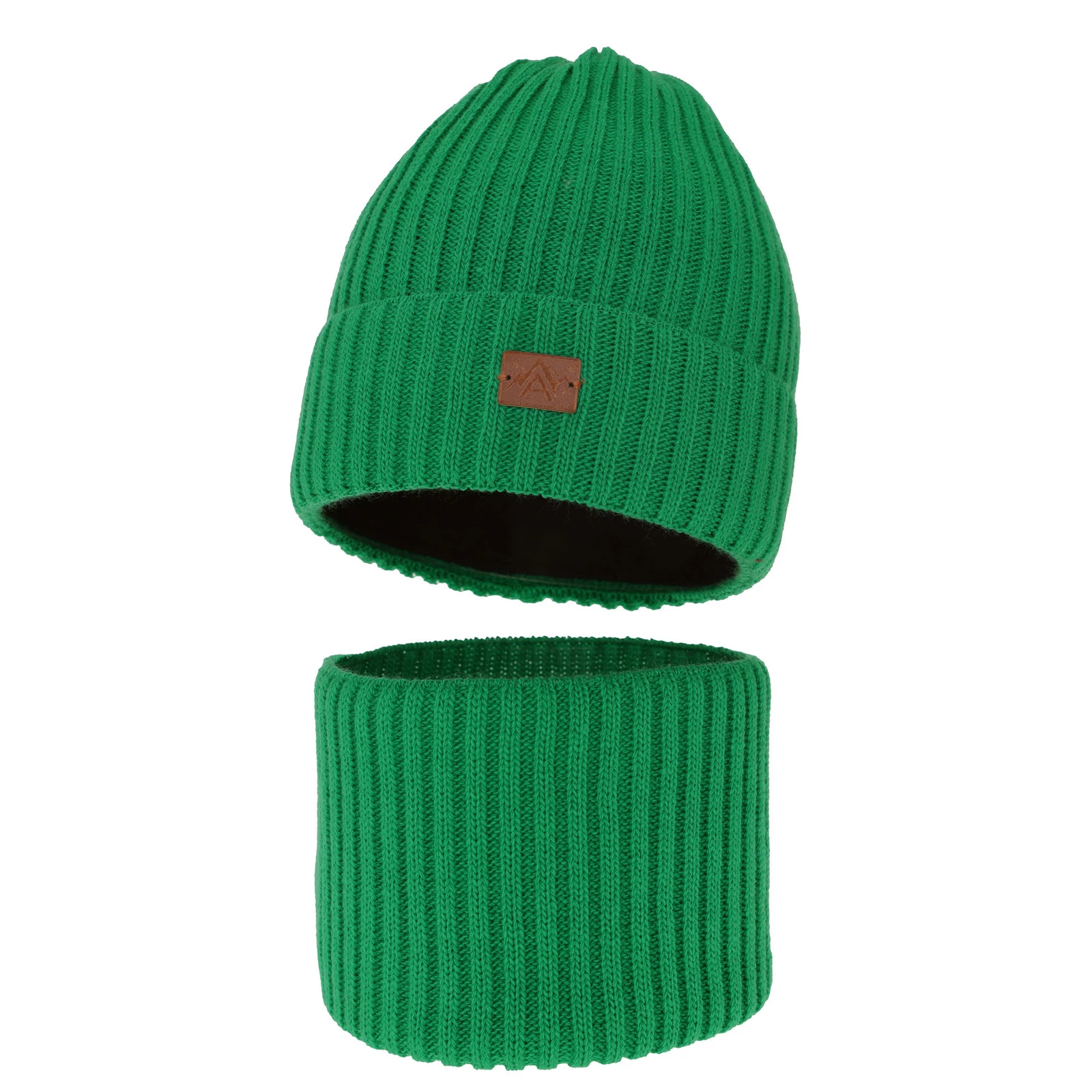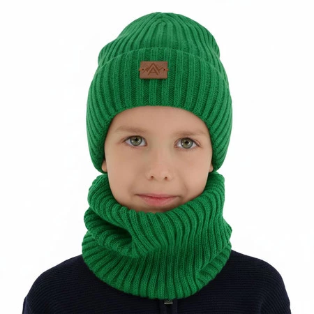 Czapka i komin dla chłopca zimowy komplet, zielony Fargo