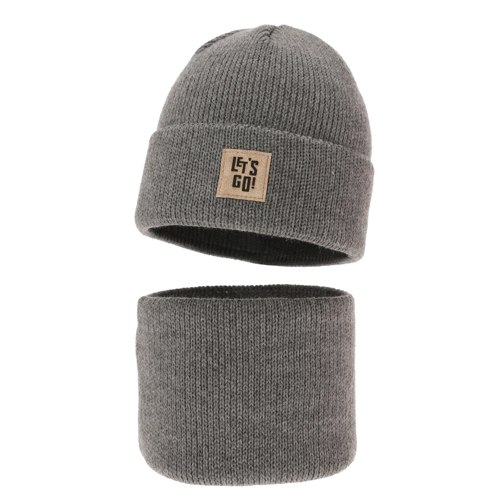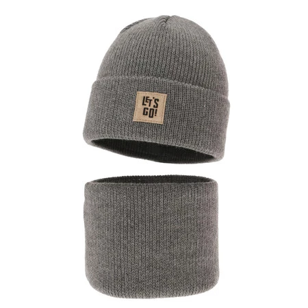 Czapka i komin dla chłopca zimowy komplet, szary Joseph