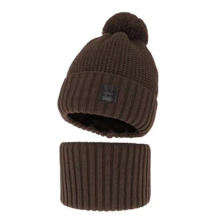 Czapka i komin dla chłopca zimowy komplet, brązowy, z pomponem Conan