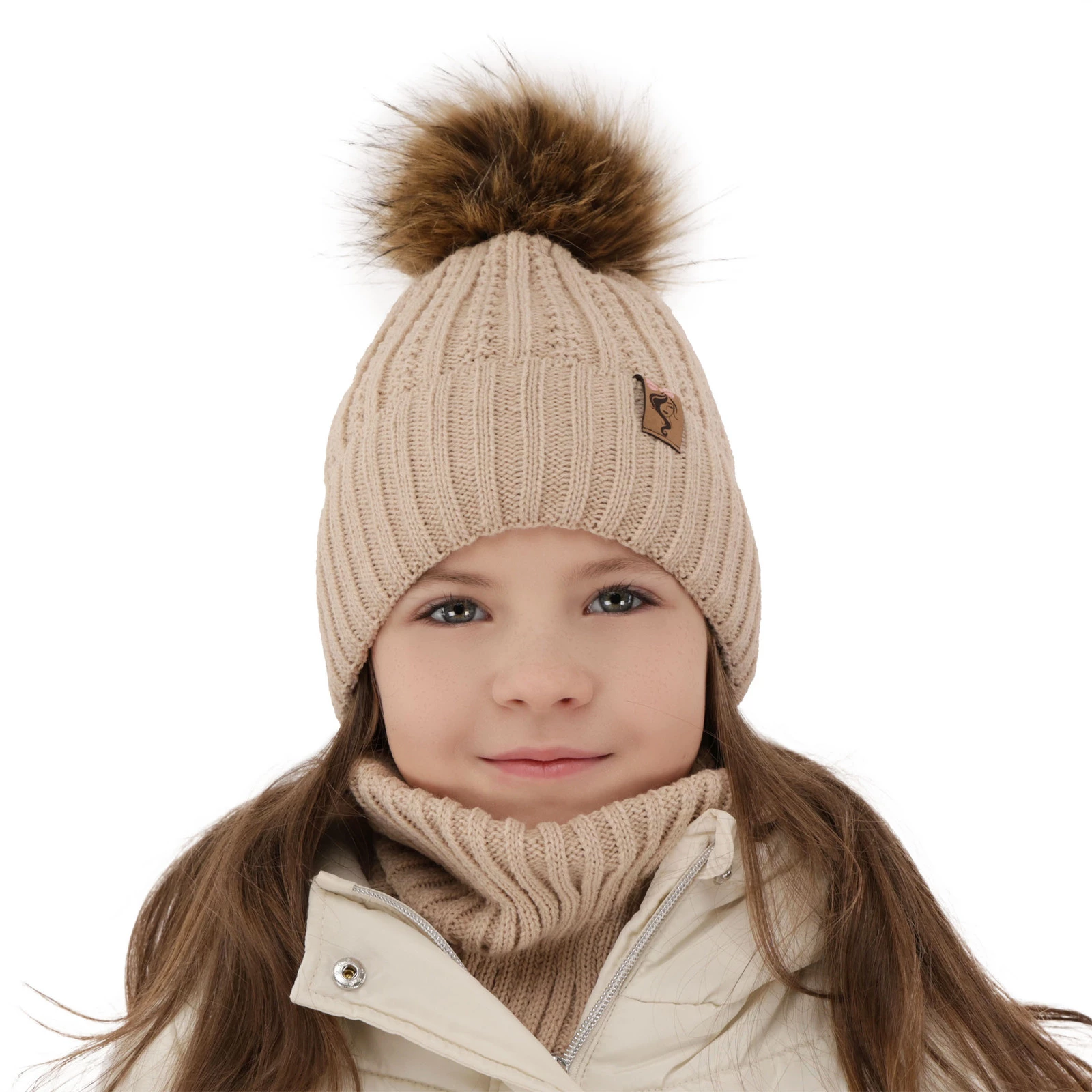 Centralnym elementem czapki z kompletu Larina jest efektowny, puszysty pompon wykonany z ekologicznego futra. Ten modny akcent sprawia, że każda dziewczynka poczuje się wyjątkowo. Wyrazisty pompon nie tylko dodaje uroku, ale również wyróżnia Twoją pociechę na tle innych dzieci - to praktyczny element, który ułatwia dostrzeżenie dziecka podczas grupowych zabaw.