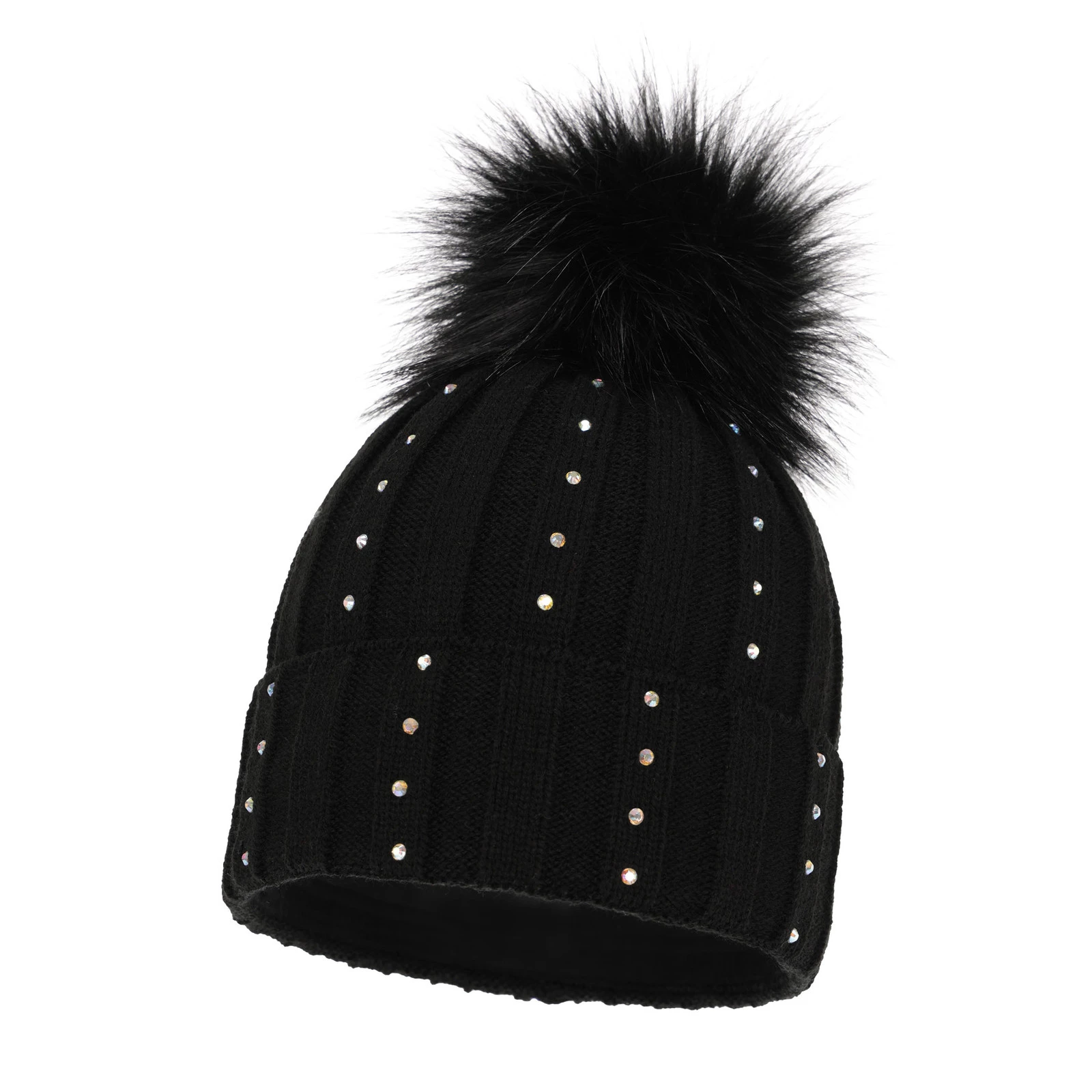 Czapka zimowa damska, czarna, z pomponem, Mada