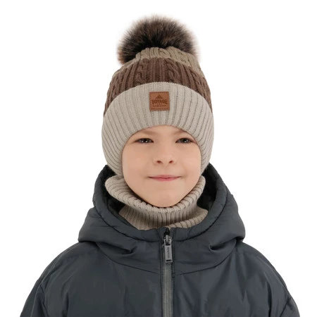 Czapka i komin dla chłopca zimowy komplet, beżowy, z pomponem Luxor