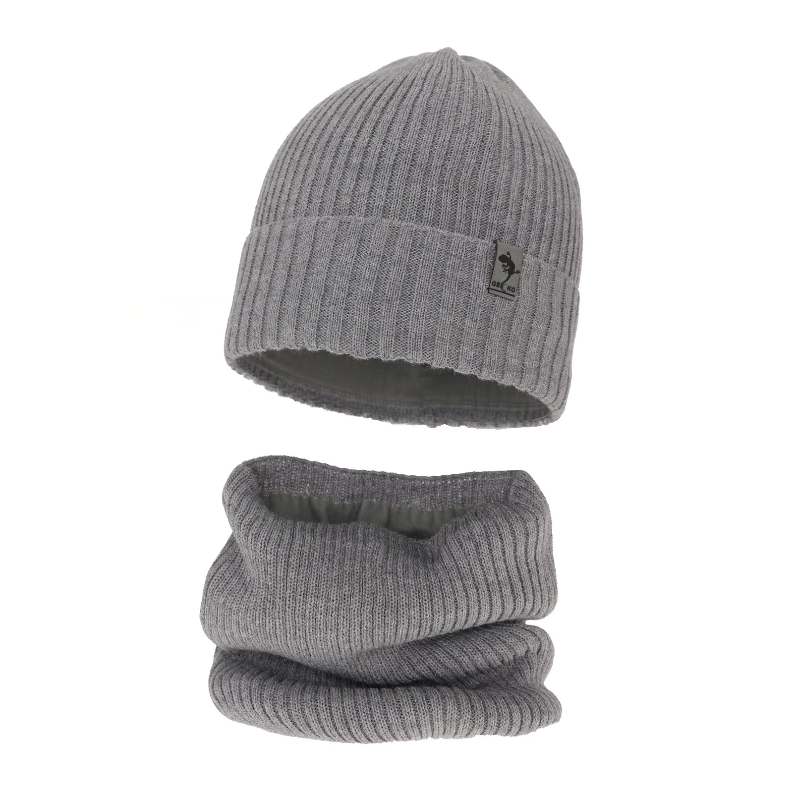Czapka i komin dla chłopca zimowy komplet, jasnoszary, wełniany merino Gecko