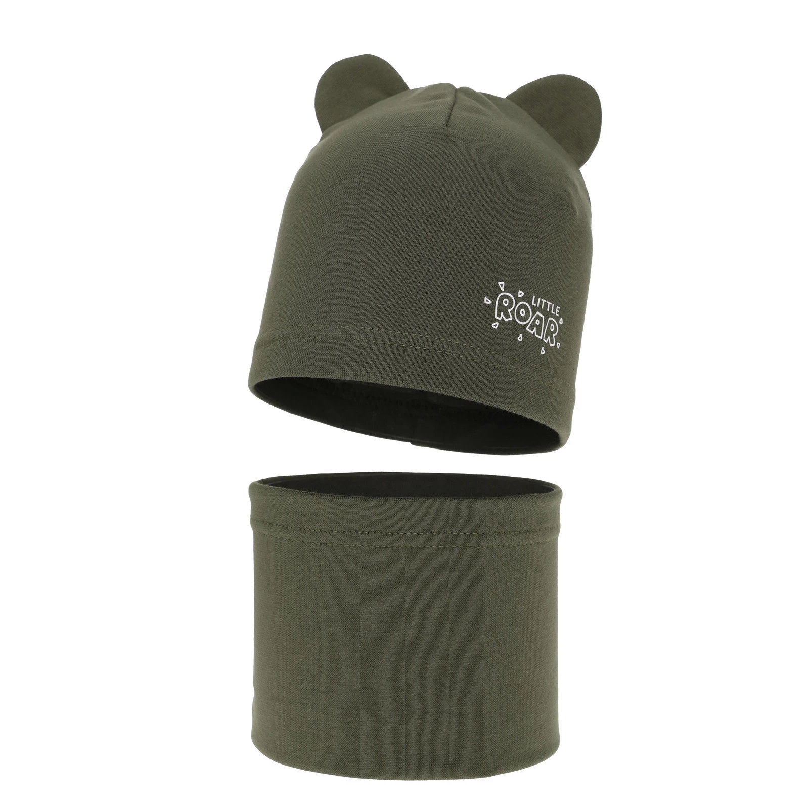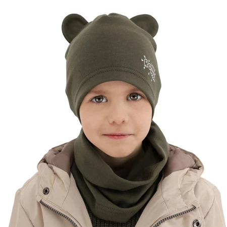 Czapka i komin dla chłopca jesienny, wiosenny komplet, khaki Cymes