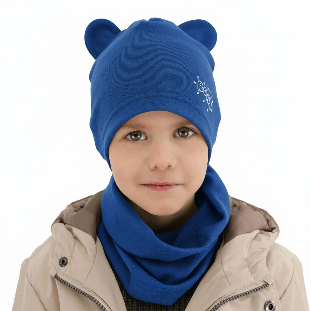 Dzięki dodatkowi elastanu, komplet doskonale dopasowuje się do kształtu głowy i szyi, nie uciskając i nie powodując dyskomfortu. To szczególnie ważne dla mam, które wiedzą, jak istotne jest, by dziecko nie chciało ściągać czapki podczas zabawy.