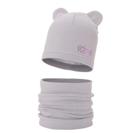 Czapka i komin dla dziewczynki jesienny, wiosenny komplet, szary, bawełniany Cyntia