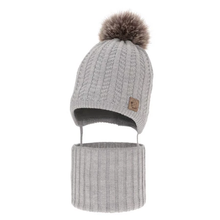 Czapka i komin dla chłopca zimowy komplet, jasnoszary, z pomponem Endo