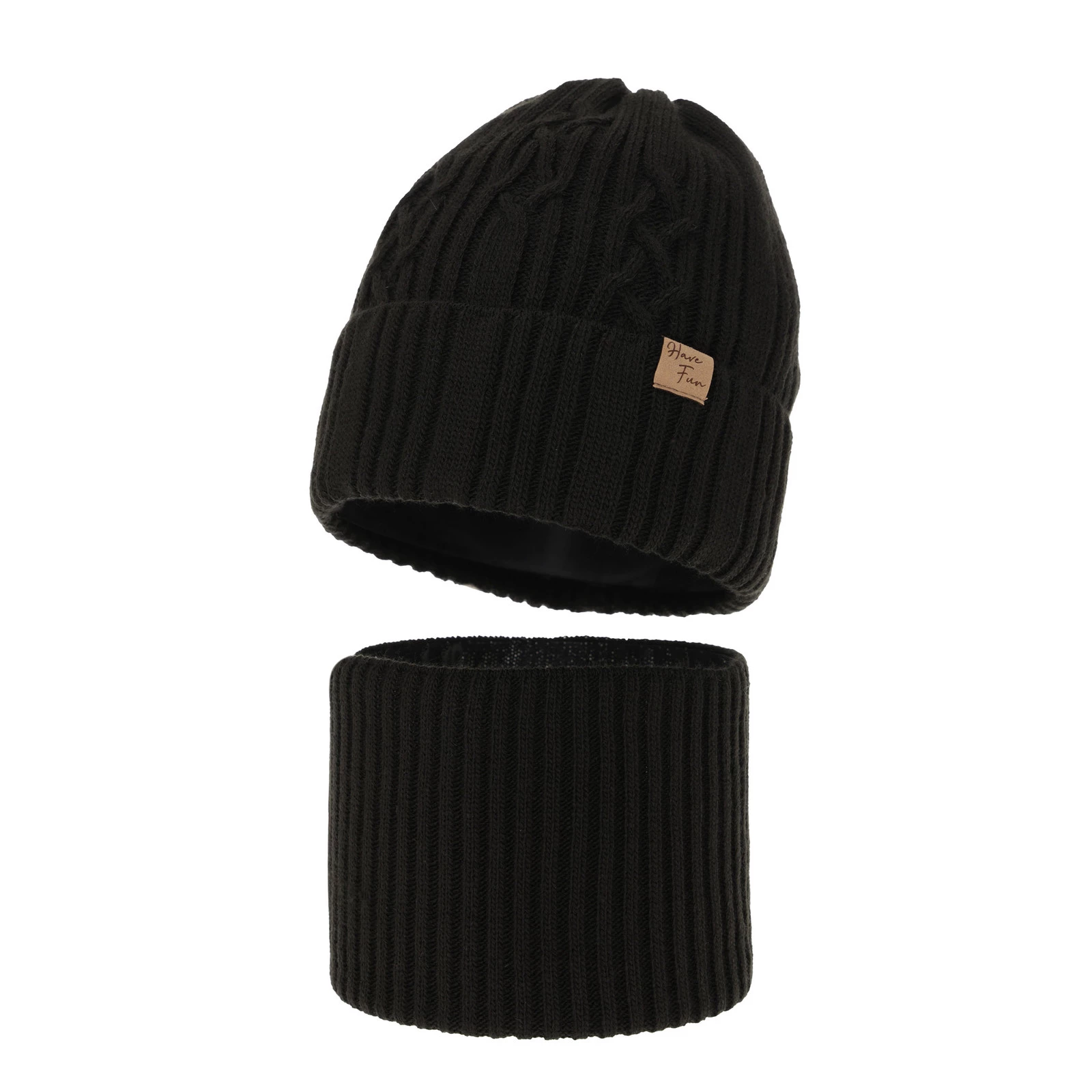Czapka i komin dla dziewczynki zimowy komplet, czarny Rema