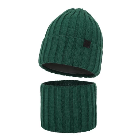 Czapka i komin dla chłopca zimowy komplet, szmaragdowy Baster