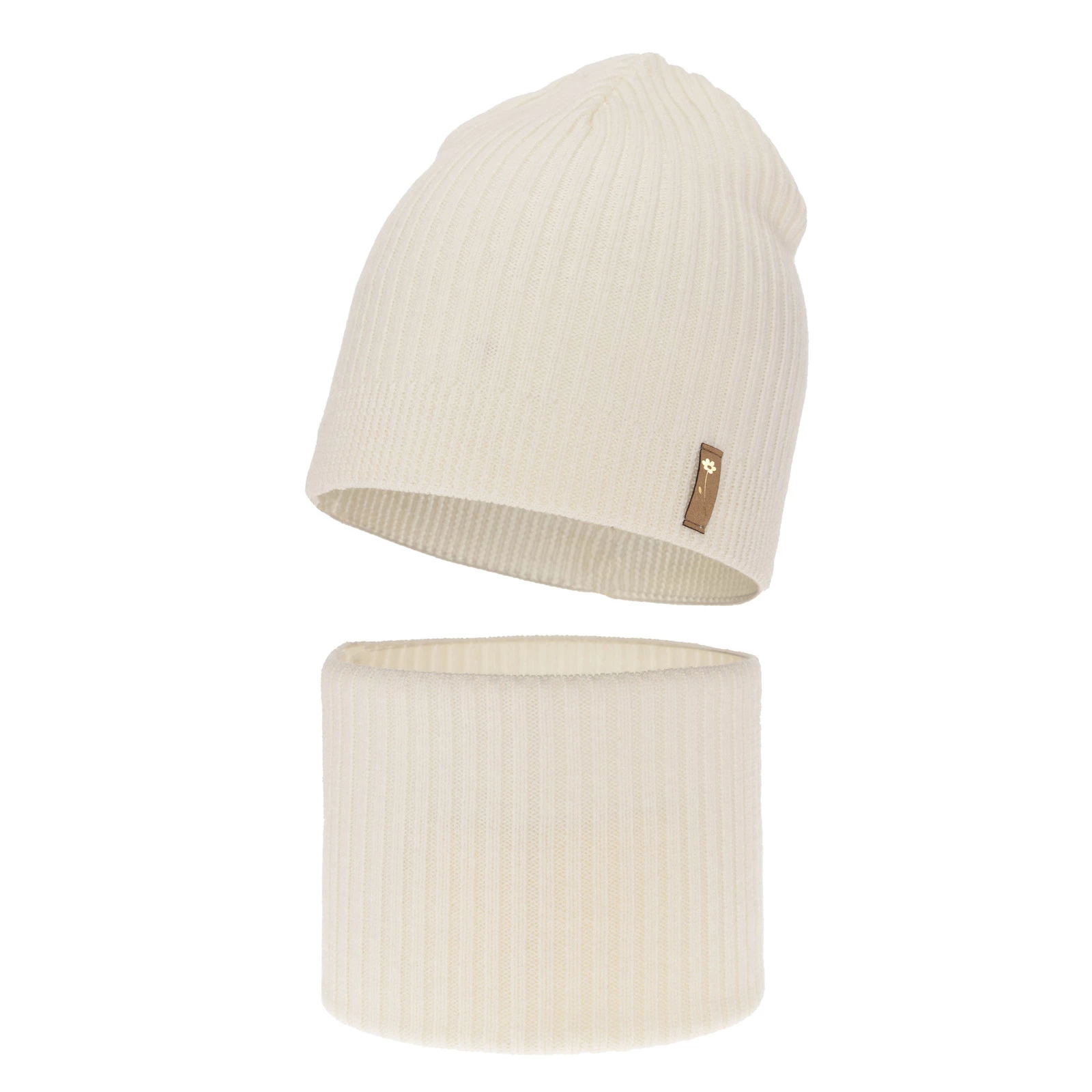 Czapka i komin dla dziewczynki jesienny, wiosenny komplet, kremowy, 100% wełniana merino Chelsie