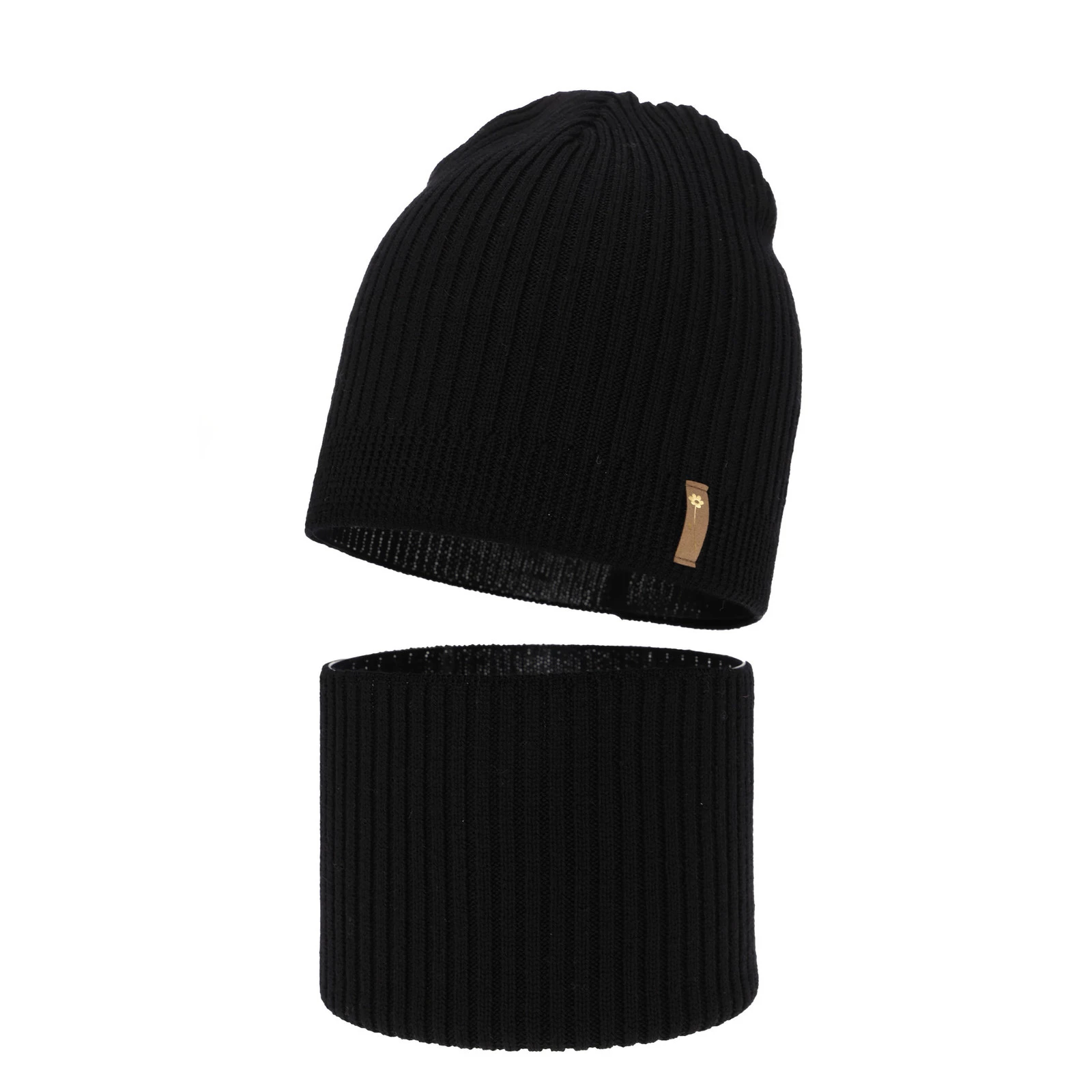 Czapka i komin dla dziewczynki jesienny, wiosenny komplet, czarny, 100% wełniana merino Chelsie