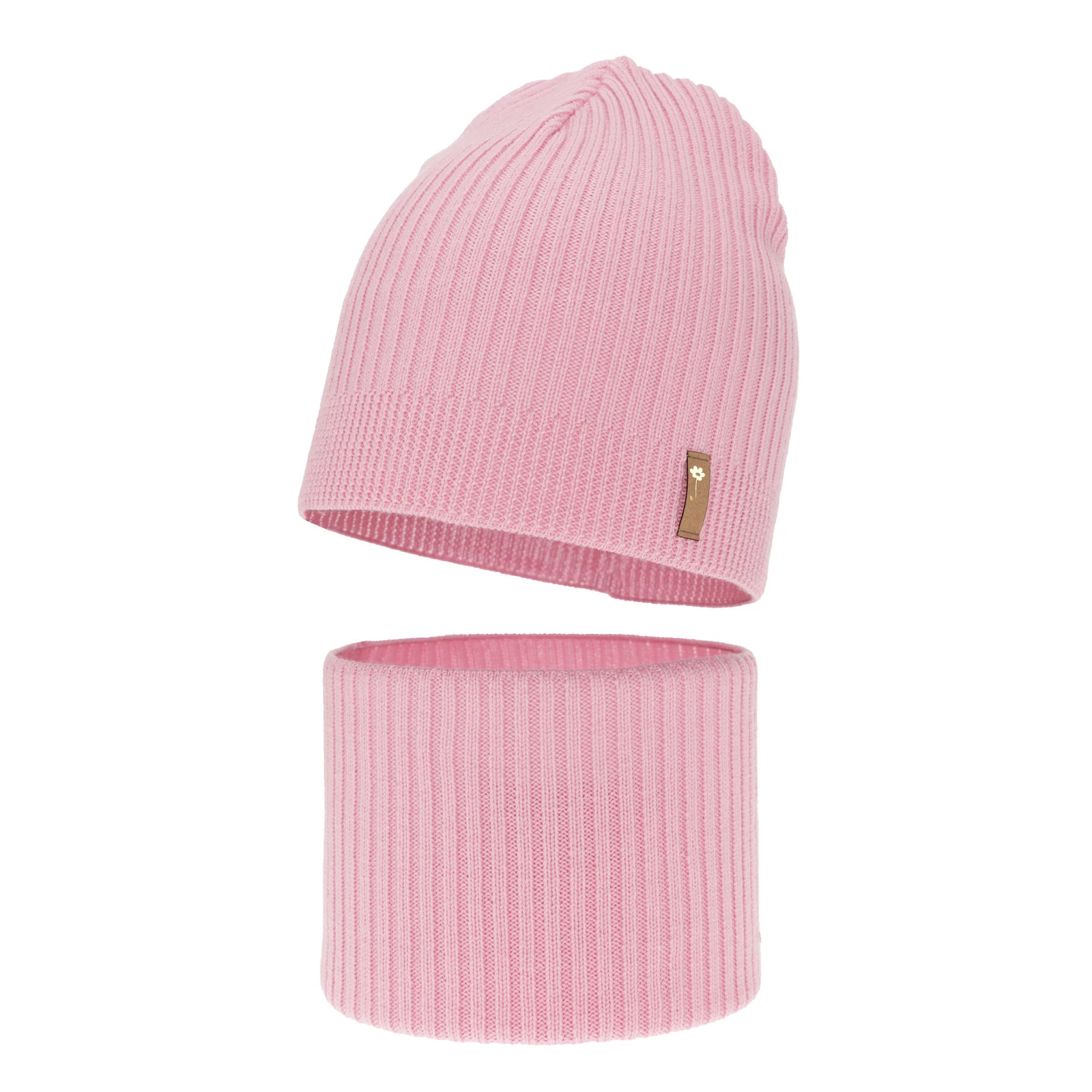 Czapka i komin dla dziewczynki jesienny, wiosenny komplet, różowy, 100% wełniany merino Chelsie