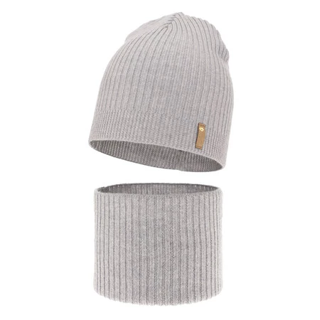 Czapka i komin dla dziewczynki jesienny, wiosenny komplet, szary, 100% wełniany merino Chelsie