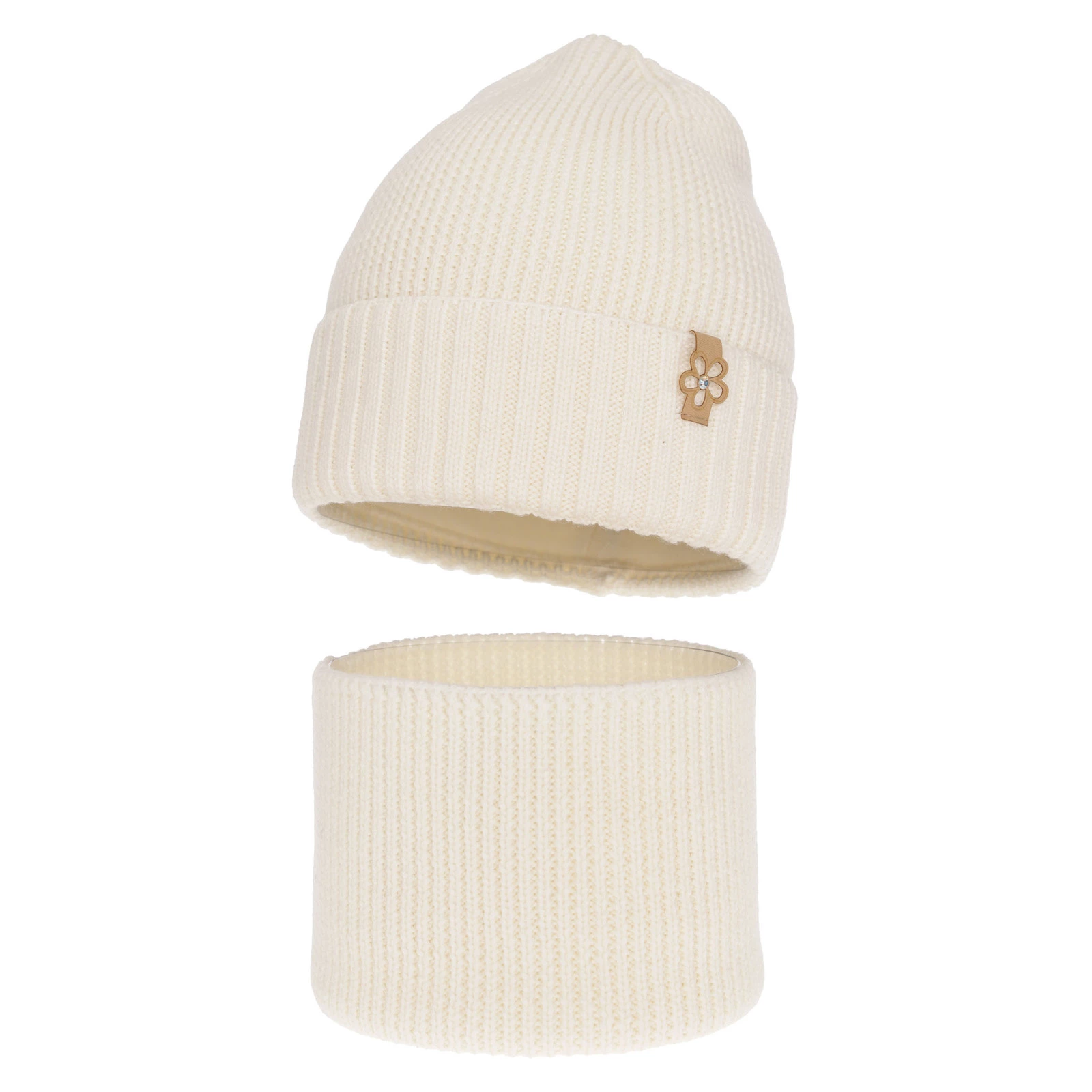 Czapka i komin dla dziewczynki zimowy komplet, kremowy, 100% wełniana merino Nelita