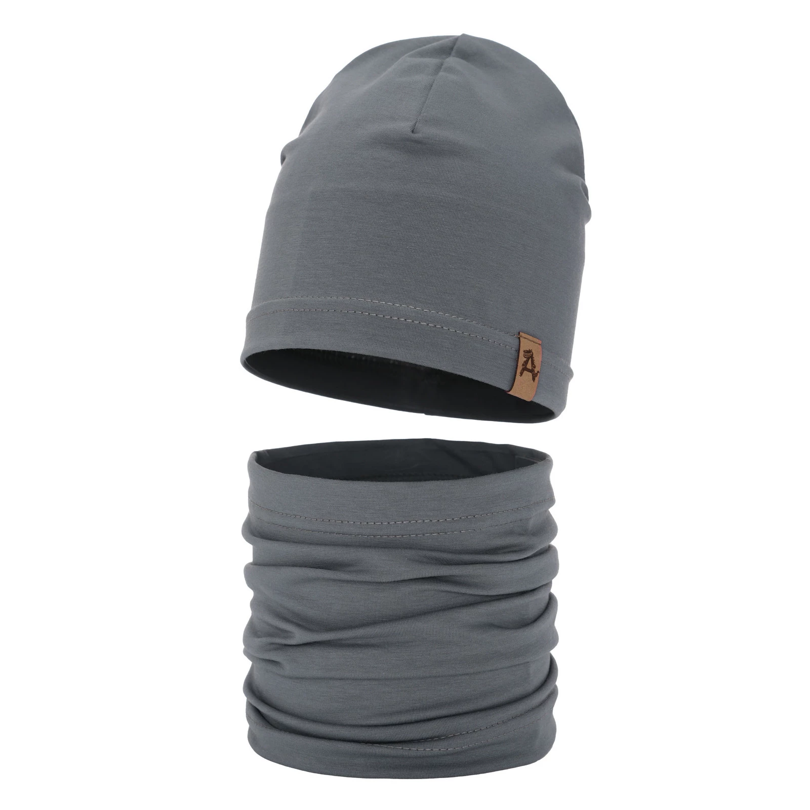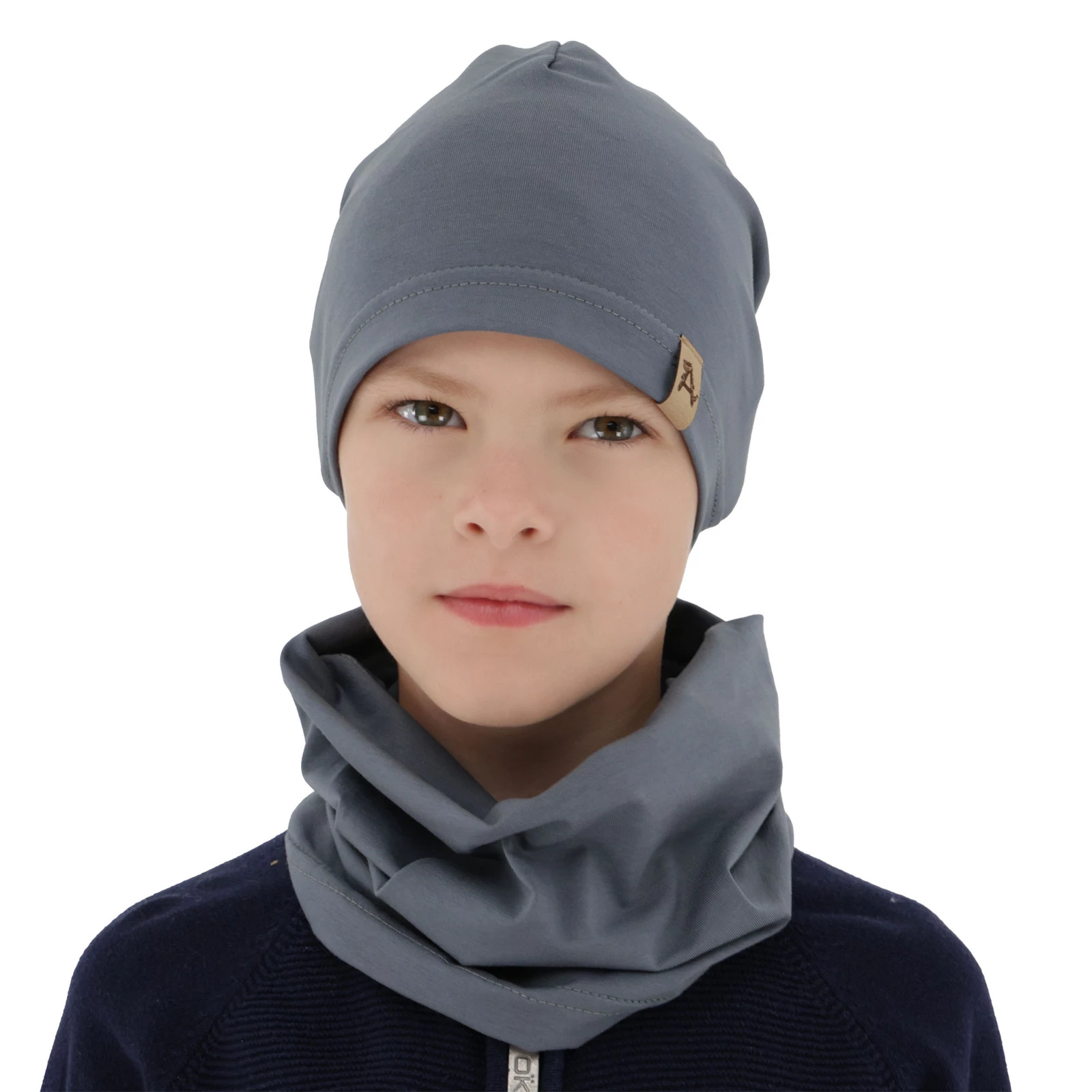 Czapka i komin dla chłopca jesienny, wiosenny komplet, szary, Griffin