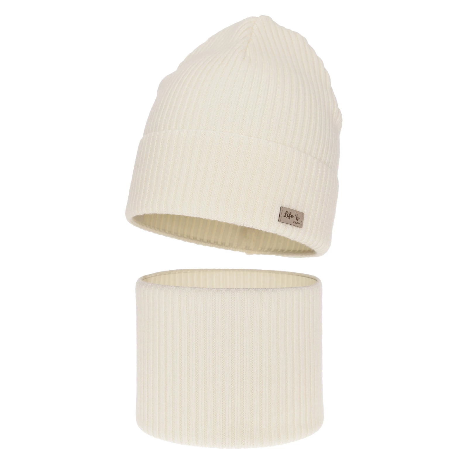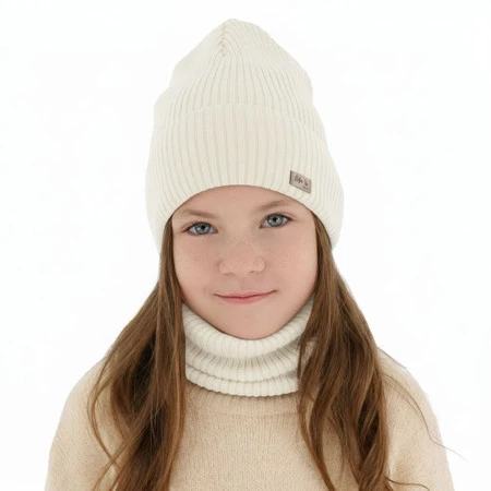 Czapka i komin dla dziewczynki jesienny, wiosenny komplet, kremowy, 100% wełniana merino Itra