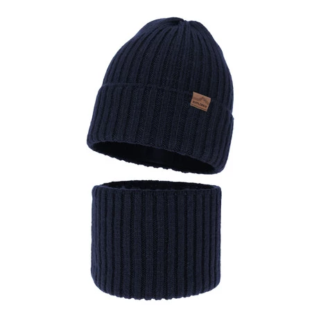 Czapka i komin dla chłopca zimowy komplet, granatowy, wełniany merino Karmin