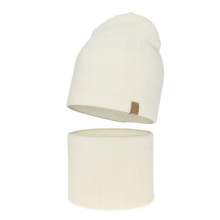 Czapka i komin dla dziewczynki jesienny, wiosenny komplet, kremowy, 100% wełniana merino Ricona
