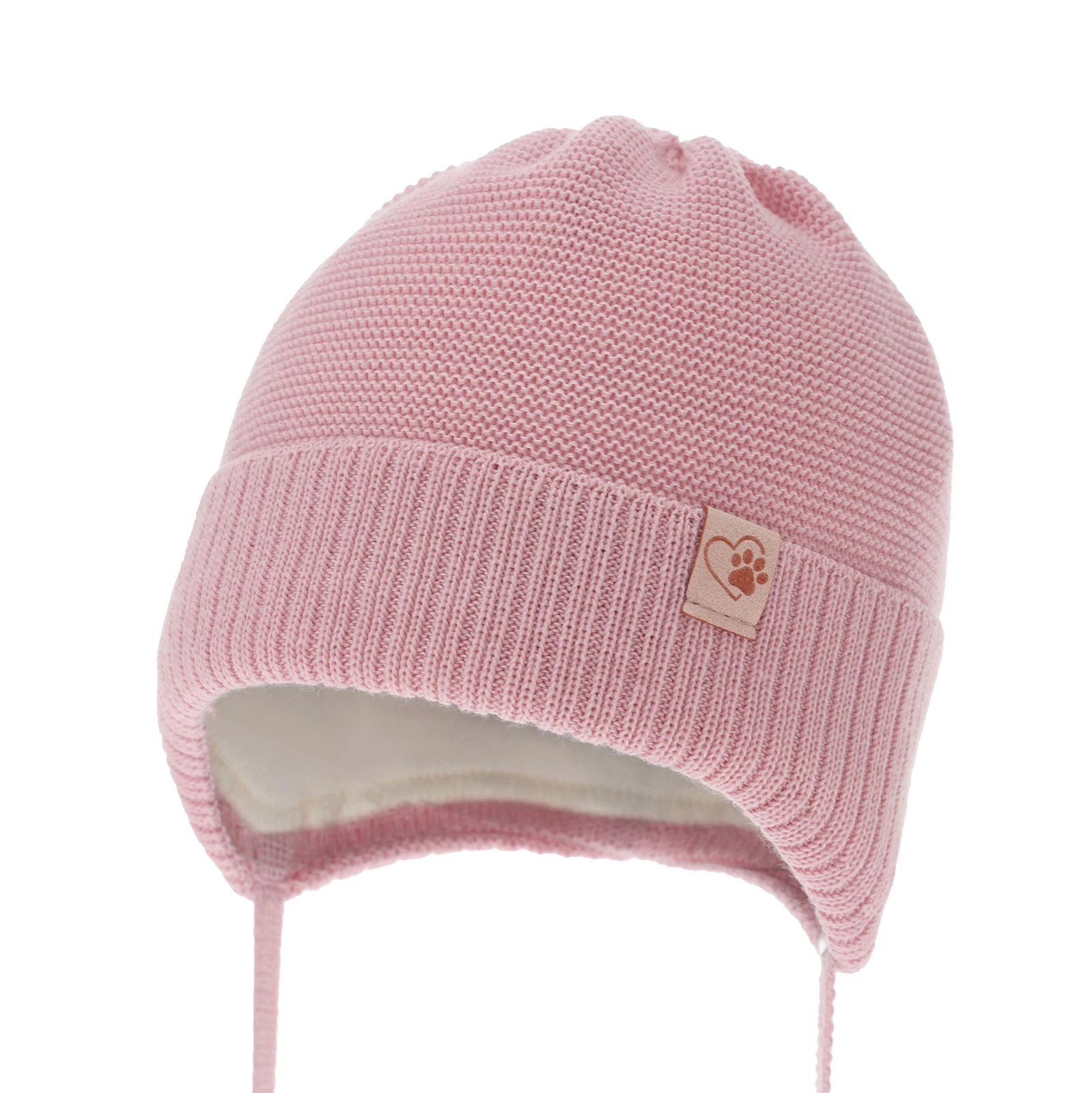 Czapka zimowa dla dziewczynki, różowa, wiązana, z wełną merino, Dari