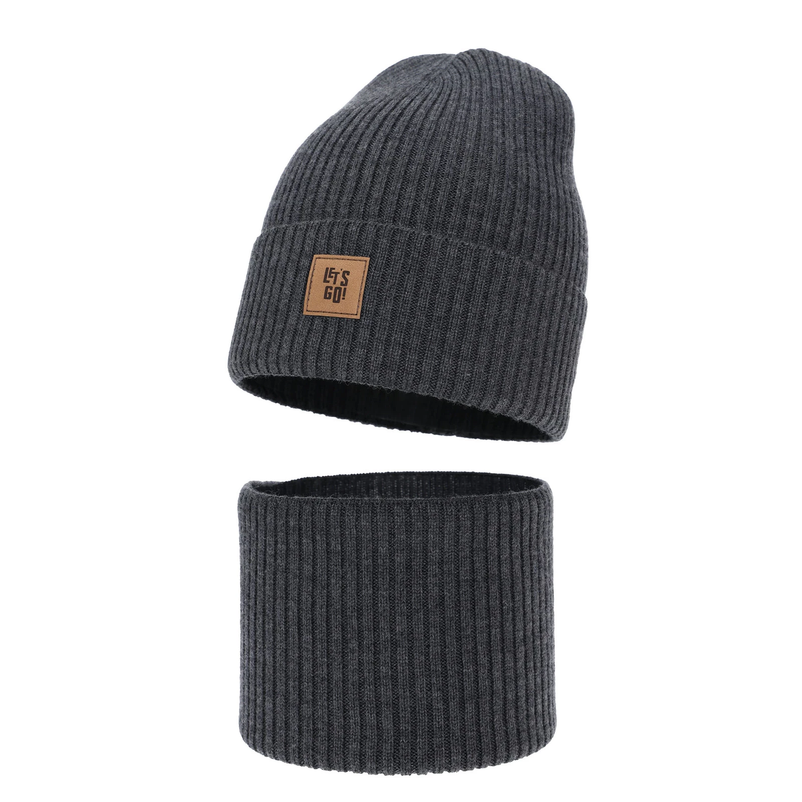 Czapka i komin dla chłopca, jesienny, wiosenny komplet szary 100% wełniany merino Vanto