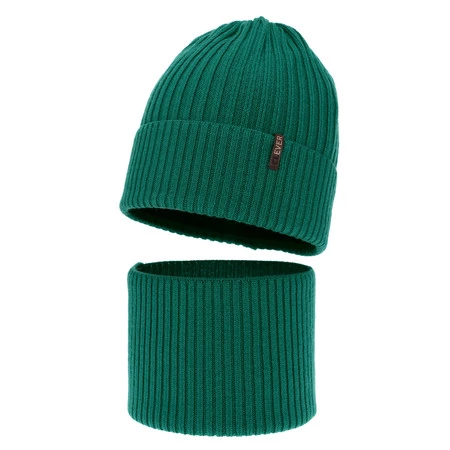 Czapka i komin dla chłopca, zimowy komplet, szmaragdowy, 100% wełniany merino, Gizmo